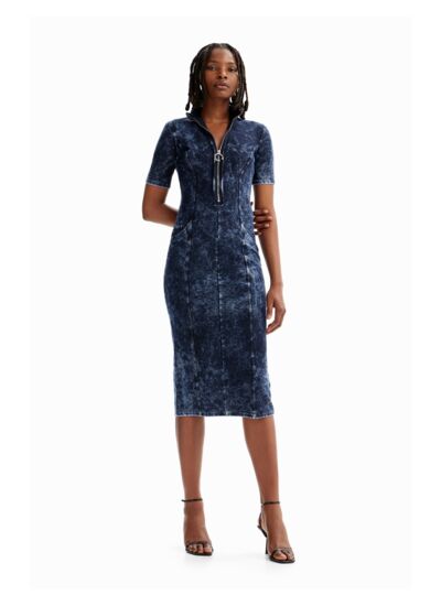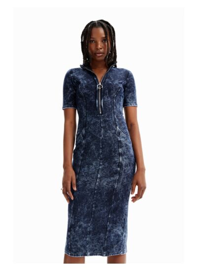 Affirmez votre style avec cette robe midi ajustée qui allie modernité et confort. Son imprimé effet denim usé apporte une touche urbaine et authentique à votre garde-robe.