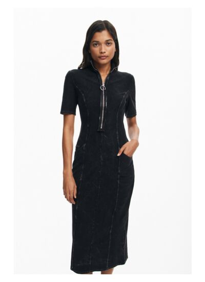 Conçue par Desigual, cette robe à manches courtes et col rond épouse délicatement la silhouette pour sublimer vos courbes. La fermeture éclair facilite l’enfilage tandis que les différentes poches ajoutent une dimension pratique et tendance. Son design polyvalent s’adapte aussi bien à une journée au bureau qu’à une sortie décontractée.