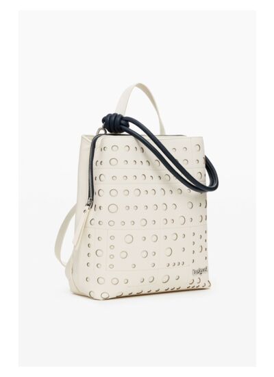 Conçu pour les amateurs de design audacieux, ce sac à dos Desigual combine un simili cuir perforé qui laisse entrevoir des cercles de couleur unie, créant un jeu visuel unique. Sa fermeture éclair sécurise vos affaires tandis que ses multiples poches facilitent l’organisation. Polyvalent, il se porte à la main ou sur le dos grâce à ses poignées et sangles ajustables, s’adaptant à toutes vos envies.
