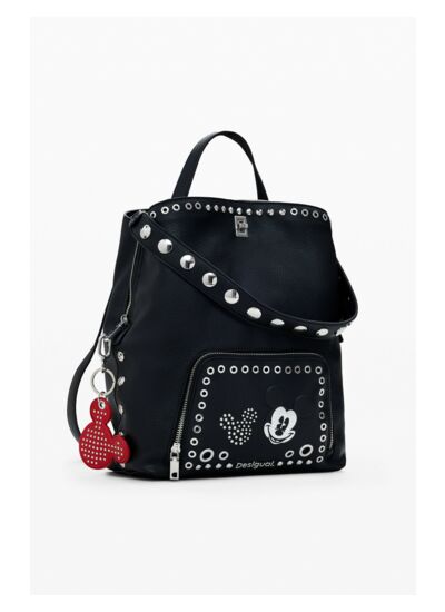 Affichez un style unique avec ce sac à dos moyen en effet cuir, sublimé par les broderies iconiques de Mickey Mouse™ et des détails en clous qui apportent une touche rock et moderne. Son porte-clés amovible ajoute une note ludique et personnalisable à votre look.