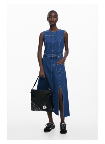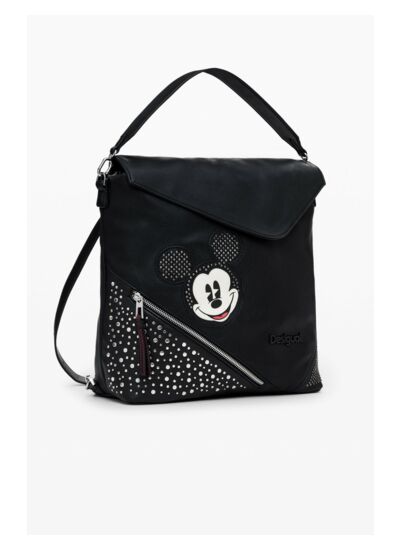 Dimensions adaptées pour un usage quotidien. Matière principale : tissu effet cuir. Fermeture par rabat. Deux poignées pour un port multiple. Décorations : clous et broderie patch Mickey Mouse. Marque : Desigual. Entretien : ne pas laver.