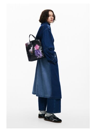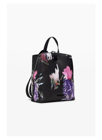 Dimensions compactes, effet cuir de qualité, imprimé floral exclusif Desigual, poignées multipositions, fermeture éclair robuste. Entretien : ne pas laver.