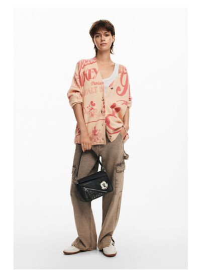 Affichez un style audacieux et décalé avec ce sac bandoulière moyen en tissu effet cuir, orné de clous métallisés, de broderies raffinées et du patch iconique de Mickey Mouse. Une pièce unique qui allie esprit streetwear et touche Disney pour sublimer vos tenues au quotidien.