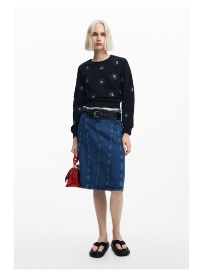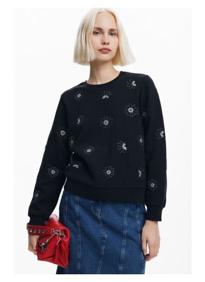 Conçu pour allier confort et originalité, ce sweat se distingue par son col rond classique et son bas côtelé qui assure une tenue parfaite. La finesse de la maille apporte une douceur agréable sur la peau, tandis que les détails floraux apportent une touche féminine et raffinée, idéale pour dynamiser vos looks casual ou sophistiqués.