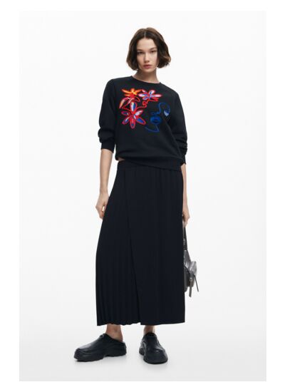 Question ? L’imprimé Arty est-il présent sur tout le sweat ? Réponse. L’imprimé Arty est appliqué sur l’ensemble du sweat, apportant une touche artistique distinctive.