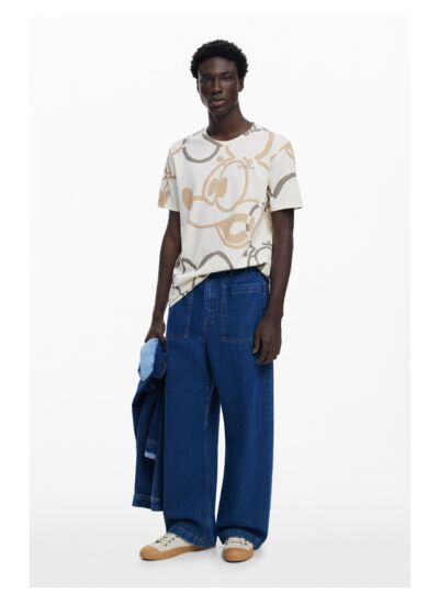 Conçu pour ceux qui aiment se démarquer sans effort, ce T-shirt à manches courtes et col rond offre une silhouette fluide et agréable à porter toute la journée. Le motif Mickey Mouse, fidèle à l’univers Desigual, apporte une touche ludique et vintage, parfaite pour dynamiser vos tenues casual. Sa matière douce et légère garantit un confort optimal, que ce soit en ville ou en week-end.
