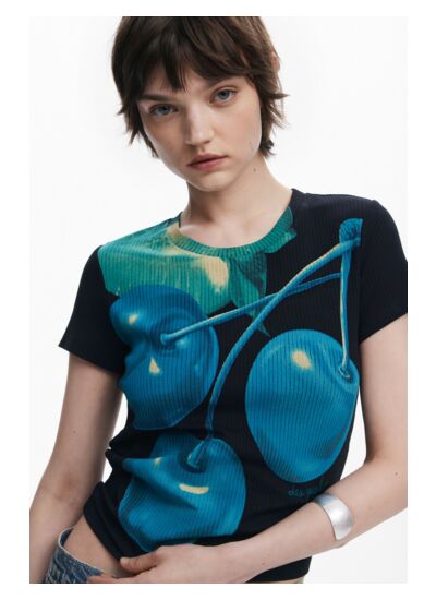 Exprimez votre style avec ce T-shirt en maille côtelée, alliant confort et originalité grâce à son imprimé Arty de fruits en nuances de bleu. Une pièce unique qui dynamise votre garde-robe tout en restant facile à porter au quotidien.