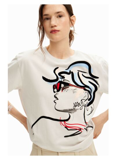 Conçu par Desigual, ce T-shirt allie confort et style grâce à sa coupe ajustée et son tissu doux. L’illustration artistique apporte une touche d’originalité qui capte le regard, idéale pour celles qui veulent exprimer leur personnalité sans compromis. Facile à associer, il s’intègre parfaitement à toutes vos tenues casual ou plus travaillées.