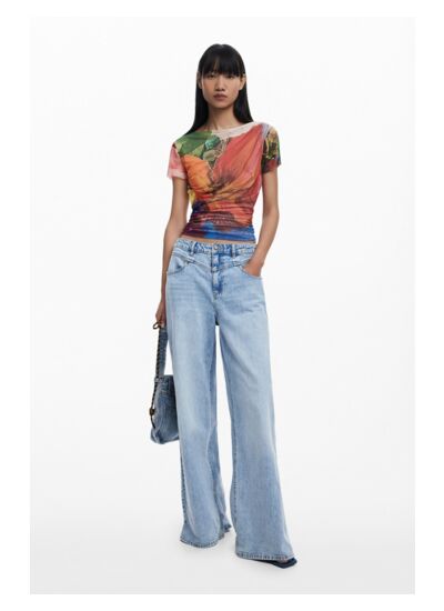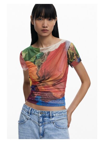 Sublimez votre allure avec ce T-shirt en mousseline signé Desigual, où élégance et modernité s’entrelacent. Son drapé asymétrique frontal et son imprimé floral apportent une touche unique à votre style quotidien.