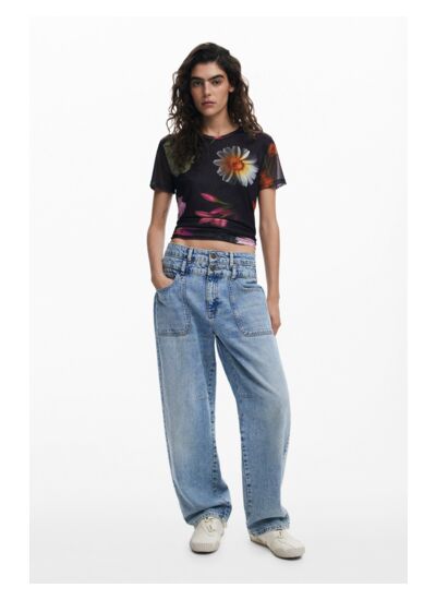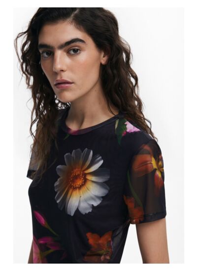 Lavage en machine à froid à l’envers, cycle très délicat, pour préserver la qualité et la fluidité du tissu. Marque : Desigual. Catégorie : T-SHIRT SHORT SLEEVE.