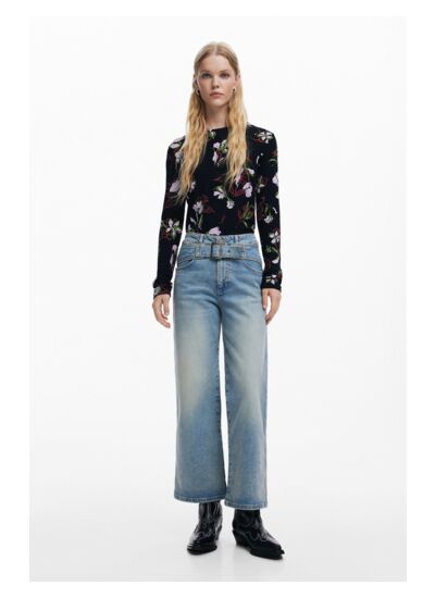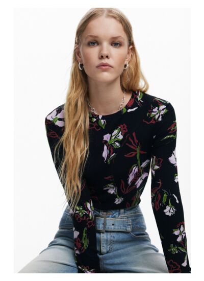 Affirmez votre style avec ce T-shirt en maille à manches longues, sublimé par un imprimé floral délicat. Une pièce signée Desigual qui allie confort et originalité pour vos looks quotidiens.