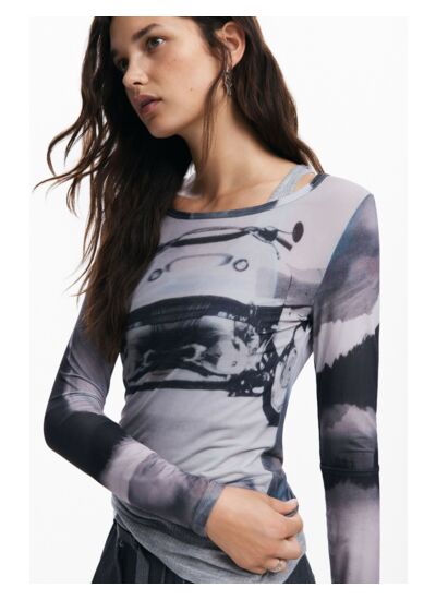 Confectionné par Desigual, ce T-shirt long sleeve joue sur les contrastes entre modernité et décontraction. Sa coupe ajustée met en valeur la silhouette tout en offrant une liberté de mouvement idéale au quotidien. L’imprimé voiture estompé donne une dimension artistique et urbaine, parfaite pour dynamiser vos tenues casual ou smart casual.