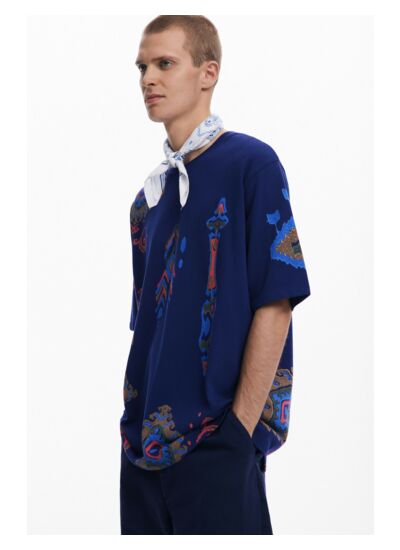 Affichez un style unique avec ce T-shirt à manches courtes au col rond, sublimé par un imprimé ethnique qui capte tous les regards. Une pièce signée Desigual, parfaite pour dynamiser votre garde-robe avec audace et authenticité.