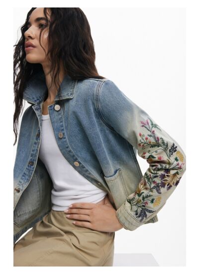 Affirmez votre style avec cette veste en jean Desigual, où la tradition rencontre l’audace. Les fleurs colorées brodées sur les manches apportent une touche d’originalité à un classique intemporel.