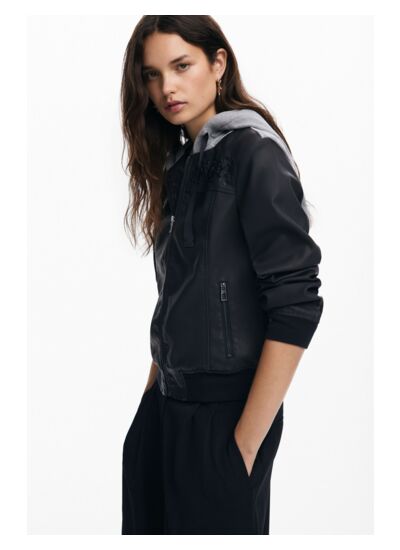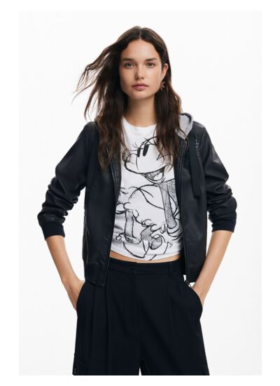 Lavage en machine à froid à l’envers, cycle délicat. Composition : polyuréthane (PU) pour un effet cuir moderne, doublure textile pour plus de confort. Fermeture éclair intégrale, capuche fixe, imprimé Mickey Mouse sur l’ensemble.