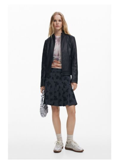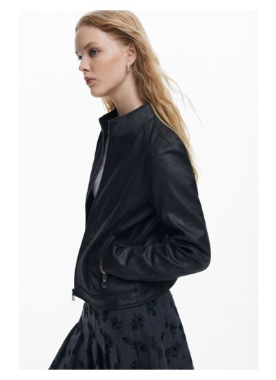 Lavage en machine à l’eau froide recommandé pour préserver la qualité du tissu effet cuir et la texture côtelée. Coupe ajustée avec manches longues combinées en tissu côtelé. Poches zippées pour plus de praticité. Marque Desigual, catégorie PU COAT.