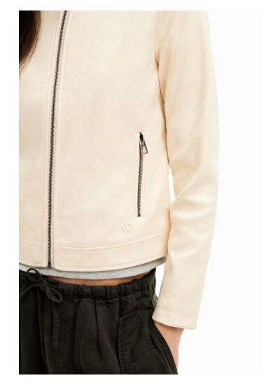 Adoptez l’allure audacieuse et moderne avec cette veste style motard ajustée signée Desigual. Sa texture douce et ses manches longues en maille côtelée apportent une touche unique à votre silhouette.
