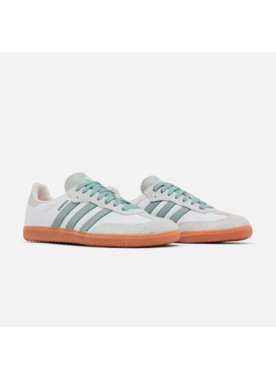 Quelles sont les caractéristiques principales des Adidas Samba OG Silver Green Putty Mauve ? Ces sneakers allient un design iconique à une palette de couleurs unique mêlant vert argenté, putty et mauve, offrant un style à la fois rétro et contemporain. Leur construction en cuir premium garantit durabilité et confort, tandis que la semelle en caoutchouc assure une excellente adhérence.