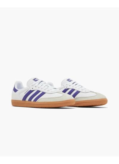 Quelles sont les caractéristiques principales des Adidas Samba OG White Energy Ink Gum ? Les Adidas Samba OG White Energy Ink Gum se distinguent par leur design emblématique revisité avec une tige en cuir blanc de qualité, des touches de bleu profond et une semelle gomme naturelle offrant adhérence et durabilité. Ce modèle allie style rétro et confort moderne, idéal pour un usage quotidien.
