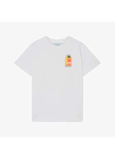 De quel matériau est composé le Casablanca T-Shirt Gradient L'Arche Blanc ? Ce modèle est confectionné en coton de haute qualité, garantissant confort, durabilité et une excellente tenue des couleurs au fil du temps.