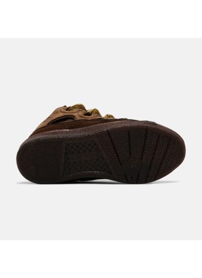 Comment entretenir mes Lanvin Leather Curb Sneakers Brown ? Pour préserver leur aspect, nettoyez-les avec un chiffon doux et humide, évitez l'exposition prolongée à l'eau et appliquez régulièrement un produit d'entretien pour cuir afin de maintenir leur souplesse et leur éclat naturel.
