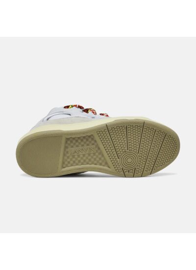 Quelle est la particularité des Lanvin Leather Curb Sneaker White Ivory ? Ces sneakers allient un design épuré à un cuir de haute qualité, offrant confort et durabilité. Leur teinte White Ivory s’adapte facilement à toutes les tenues, du casual au plus habillé, pour un style contemporain et raffiné.