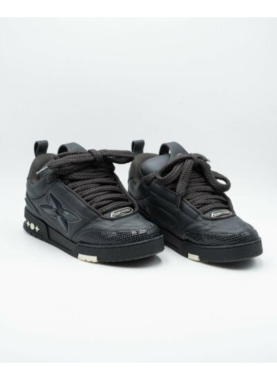 Quels matériaux composent la Louis Vuitton LV Skate Sneaker Noir ? La sneaker est conçue avec un cuir de haute qualité, associant durabilité et élégance, complétée par des finitions précises qui assurent un confort optimal et un style distinctif.