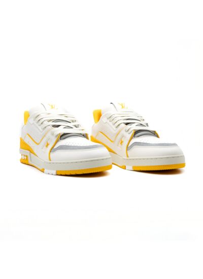 Quelles sont les caractéristiques principales des Louis Vuitton LV Trainer White Yellow Script ? Ces sneakers allient un design contemporain à une qualité artisanale exceptionnelle. Leur silhouette blanche est rehaussée par un script jaune distinctif, offrant un contraste dynamique et une identité visuelle unique. Conçues avec des matériaux premium, elles garantissent confort et durabilité pour un usage quotidien.