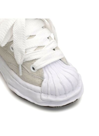 Comment entretenir les sneakers en cuir blanc Maison Mihara Yasuhiro ? Pour préserver leur éclat, nettoyez-les régulièrement avec un chiffon doux légèrement humide. Utilisez un produit spécifique pour cuir blanc afin d’éviter les taches et conservez-les à l’abri de l’humidité. Un entretien régulier prolonge la vie et la beauté de vos sneakers.
