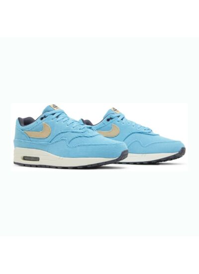 Quelle est la particularité des Nike Air Max 1 Corduroy Baltic Blue ? Ces sneakers combinent l’iconique silhouette Air Max 1 avec une empeigne en velours côtelé, offrant un style unique et une texture premium. La teinte Baltic Blue apporte une touche moderne et élégante, parfaite pour un look casual sophistiqué.