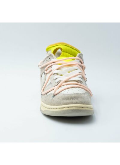 Quelles sont les caractéristiques principales des Nike Dunk Low x Off-White Lot 26 ? Ces sneakers combinent le design iconique de la Dunk Low avec la signature déstructurée et avant-gardiste d’Off-White. Elles se distinguent par des matériaux premium, une palette de couleurs contrastées et des détails uniques comme les étiquettes zip et les inscriptions typiques de Virgil Abloh, offrant un style urbain et contemporain.