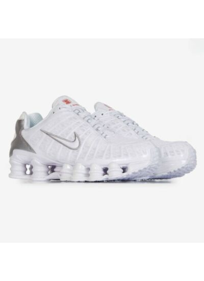 Quels sont les principaux avantages des Nike Shox TL White Metallic Silver Max Orange ? Ces sneakers offrent un amorti performant grâce à la technologie Shox, assurant un confort optimal et une excellente absorption des chocs. Leur design moderne allie blanc, argent métallique et touches orange, parfait pour un style urbain dynamique et tendance.