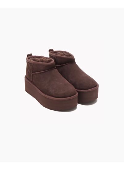 Comment entretenir les UGG Ultra Mini Plateform Brown ? Pour préserver leur aspect, nettoyez-les avec une brosse douce et un produit adapté aux matériaux utilisés. Évitez l’exposition prolongée à l’humidité et privilégiez un séchage naturel à l’air libre.