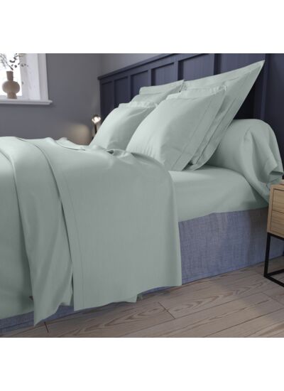 Relaxez-vous avec un drap housse en satin de coton au coloris menthe.