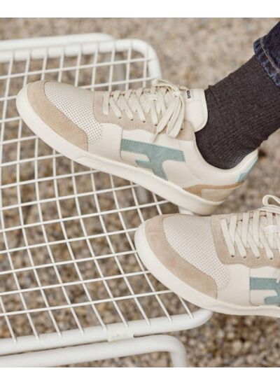 Semelle extérieure : 100% caoutchouc dont 80% de naturel,Découvre la basket basse écrue & bleu clair HAZEL, une paire intemporelle et éco-responsable.