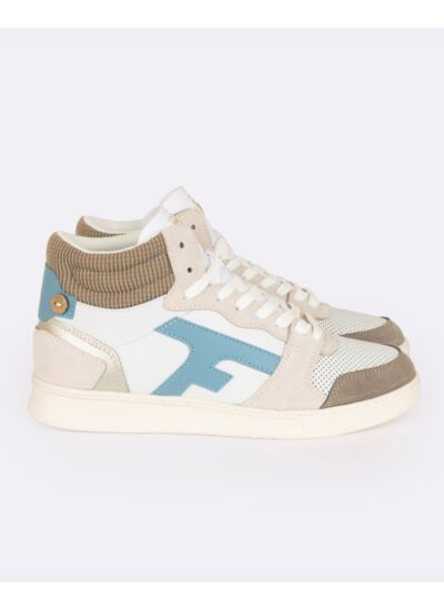 Reconnaissable au premier coup d'œil grâce à son logo F apposé sur le côté, la HAZEL MID blanche, marron clair et bleu est la basket vintage indispensable de notre marque FAGUO. Conçue avec soin, elle combine esthétique et qualité pour répondre à tes attentes d'amateur de mode rétro.