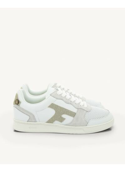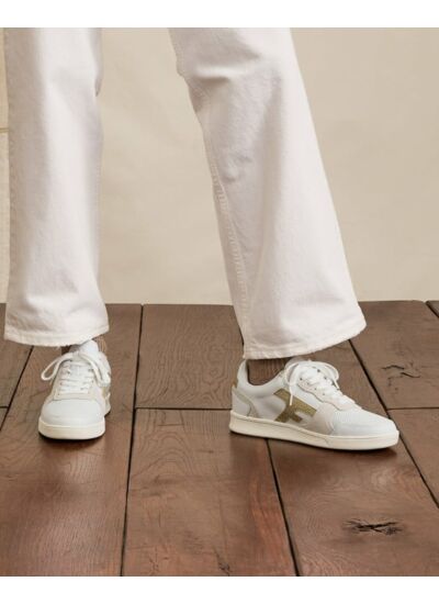 Semelle extérieure : Autres matériaux (caoutchouc recyclé à 15%),Pour un look chic et intemporel, la basket HAZEL blanche & dorée de chez FAGUO est la chaussure qu'il te faut.
