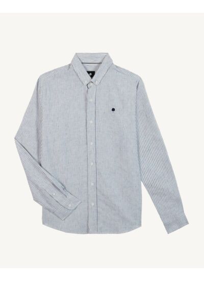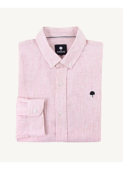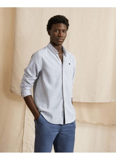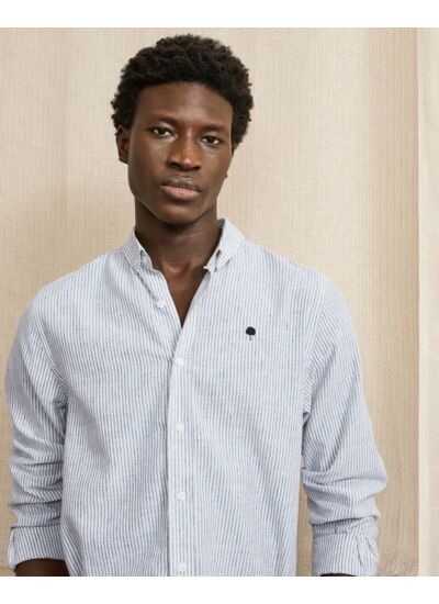 55% coton, 45% lin,Avec ses rayures écru et bleu clair, la chemise IVOY incarne l’élégance décontractée. Inspirée des classiques du vestiaire masculin, elle associe confort et raffinement grâce à sa coupe droite et son col boutonné, parfaits pour un style à la fois soigné et facile à porter.,Son tissu en mélange coton et lin lui confère une légèreté idéale pour la belle saison, tout en garantissant une bonne respirabilité. Le jeu de rayures apporte à cette chemise homme une touche de dynamisme et d’authenticité, tandis que le logo arbre en feutre, discrètement apposé sur la poitrine, signe son appartenance à l’univers Faguo.,Polyvalente, la IVOY se porte aussi bien boutonnée pour un look élégant que ouverte sur un t-shirt pour une allure plus casual. Associe-la à un chino ou un jean brut pour une tenue intemporelle et moderne. Un essentiel conçu pour durer, parfait pour enrichir un vestiaire responsable.,Points clés :Toile rayé en mélange coton et linCol boutonnéLogo arbre en feutreRef : S25SH0108 ECR50,FAGUO est certifié B Corp™ pour garantir des standards sociaux et environnementaux élevés et une transparence totale. Cette pièce FAGUO a été conçue à Nantes en France et fabriquée dans un atelier au Maroc audité en externe pour valider ses bonnes pratiques sociales et environnementales.