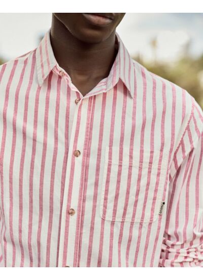 La chemise rayée rouge & crème SIGNY FAGUO est une pièce estivale incontournable de chez FAGUO.