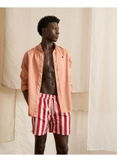 Conçu dans une matière mate et douce, ce maillot de bain homme sèche rapidement pour te suivre de la plage au bord de la piscine sans compromis sur le confort. Ses rayures rouge et crème apportent une touche dynamique et élégante à ton vestiaire estival.