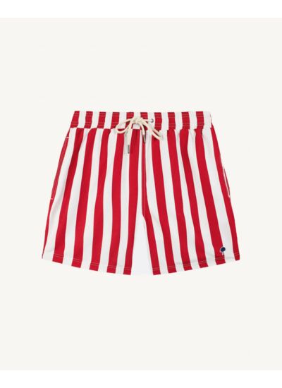 100% polyester (recyclé),Le short de bain rayé rouge & crème MIMIZAN de chez FAGUO est une idéal pour profiter pleinement de l’été.