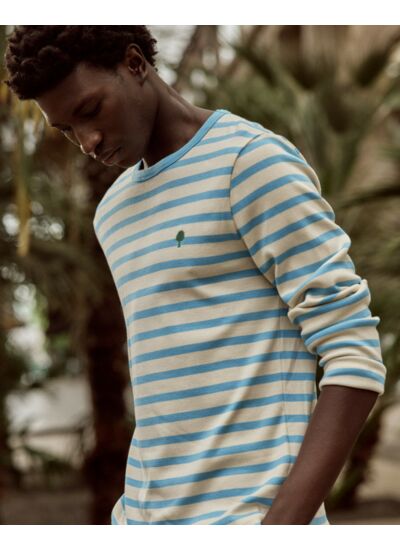 100% coton,La marinière blanche et bleu azur AUBRAC est une pièce incontournable du vestiaire masculin, revisitée par FAGUO avec une touche de modernité.