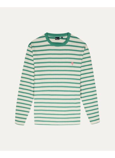 L'encolure ronde, soulignée par un bordage bleu, apporte une finition soignée et élégante. À la poitrine, la broderie arbre contrastée, signature emblématique de FAGUO, ajoute une touche graphique et colorée, idéale pour dynamiser cette marinière classique.