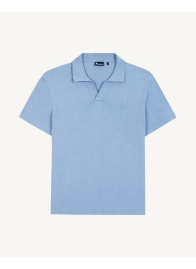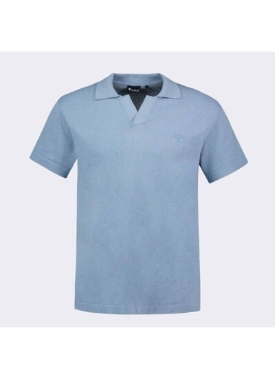 45% acrylique, 40% coton (100% recyclé), 15% lin,Le polo bleu clair BAGNOLET de chez FAGUO est une pièce idéale pour les journées estivales.