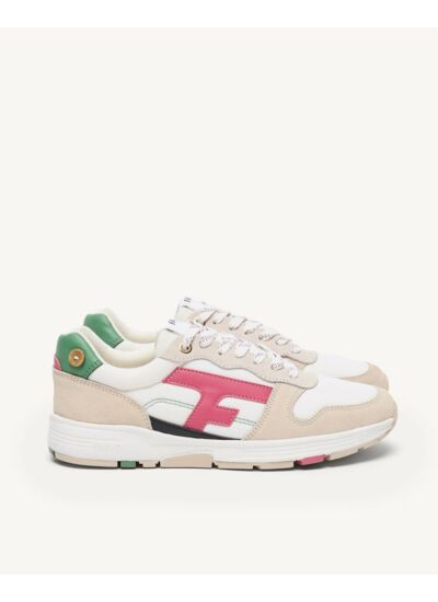 Sa tige en polyester recyclé illustre l’engagement de FAGUO pour une mode plus respectueuse de l’environnement. Les empiècements en cuir suède et PU ajoutent une touche élégante et renforcent la structure du modèle, assurant ainsi durabilité et esthétique. Pensée dans le studio FAGUO, la basket verte et rose OLIVE intègre la technologie de semelle Flexway, dotée de deux points de flexion à l’avant. Cette innovation accompagne naturellement le mouvement du pied lors de la marche, offrant une expérience fluide et agréable.