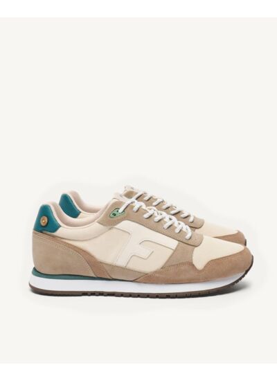 Semelle extérieure : 60% EVA, 40% caoutchouc (intégrant 20% de liège),La basket écrue et bleu océan ELM signée FAGUO est une running lifestyle au style rétro, pensée pour conjuguer élégance et praticité.