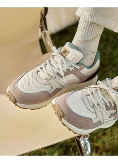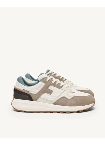 Composition extérieure : 48% nylon, 35% cuir suède, 17% cuirDoublure : 51% polyester carbon capture, 49% polyester recycléSemelle extérieure : 80% phylon injecté, 18% Caoutchouc, 2% liège,Le modèle de baskets LIMWOOD écrue et taupe est la running tout-terrain par excellence.Conçue pour s'adapter aussi bien aux explorations urbaines qu'aux aventures en plein air, cette basket FAGUO se distingue par ses lignes audacieuses et son design innovant. La variété des matières haut de gamme utilisées, comme le nylon léger et respirant et les empiècements en cuir suède, confère à la LIMWOOD une esthétique raffinée et une durabilité remarquable.Sa semelle, souple et légère, assure un déroulé naturel et un confort optimal, parfait pour les longues journées actives. Équipée de la technologie exclusive Izigrip, son patin de semelle personnalisé garantit une adhérence impeccable et un amorti efficace sur tous types de terrains.Le design de la LIMWOOD intègre des surpiqûres inspirées du duramen, ajoutant une touche unique et organique à la tige en nylon. Ce modèle, qui fait partie de la Lab Urban Oasis, reflète l’engagement de FAGUO envers une mode durable. Sa doublure en textile recyclé, intégrant une technologie de capture du carbone, témoigne de cet engagement écoresponsable, tout comme son packaging recyclé et recyclable.Les lacets en coton viennent parfaire l’ensemble, apportant une note naturelle et authentique. Le logo "F", discrètement intégré, rappelle fièrement l’identité de la marque. De plus, chaque paire de LIMWOOD vendue contribue au projet Miyawaki de reforestation, un geste concret pour la préservation des écosystèmes.Avec son design élégant, ses performances techniques et son impact environnemental positif, la basket écrue et taupe LIMWOOD s’adresse à ceux soucieux de conjuguer style, confort et responsabilité écologique dans leur quotidien.Ref: S25CG9211 ECR81,FAGUO est certifié B Corp™ pour garantir des standards sociaux et environnementaux élevés et une transparence totale. Cette pièce FAGUO a été conçue à Nantes en France et fabriquée dans un atelier en Chine audité en externe pour valider ses bonnes pratiques sociales et environnementales.