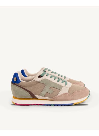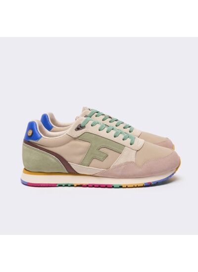 Semelle extérieure : 60% EVA, 40% caoutchouc dont 15% de naturel,La basket beige foncée et kaki clair ELM est une running FAGUO lifestyle qui s’inspire des modèles rétro tout en intégrant des matériaux modernes et écoresponsables.