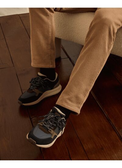 La basket bleu et kaki est dotée d'une tige en cuir et suède certifiés Leather Working Group, associée à des empiècements en suède et textile recyclé pour une durabilité exceptionnelle. Sa doublure en textile recyclé te garantit un confort optimal tout au long de la journée.