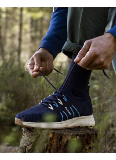 Dessus : TextileDoublure : TextileSemelle intérieure :Autres matériaux (liège)Semelle extérieure : Autres matériaux (phylon moulé et caoutchouc recyclé à 15%),Découvre la HEARTWOOD en bleu marine, une running homme lifestyle incontournable pour toi si tu souhaite une combinaison parfaite entre style, confort, et durabilité ! Sa tige tricotée en un seul morceau à partir de tencel, une fibre issue de la pulpe de bois à l'empreinte carbone minimale, révèle un engagement écologique sans compromis sur le design. Avec des détails contrastés, tels que les cordons colorés sur les côtés et l'empiècement en liège à l'arrière, cette basket bleu marine offre une esthétique moderne et dynamique. Ultra-légère et conçue pour un confort optimal, la HEARTWOOD est ton accompagnatrice idéale au quotidien. Que tu sois en déplacement ou que tu souhaites ajouter une touche de style à ta tenue décontractée, cette running lifestyle répond à tous tes besoins.,Offre à tes pieds l'expérience exceptionnelle de la basket HEARTWOOD, la running lifestyle qui allie performance, esthétique, et respect de l'environnement. Points clés :- Tige en tencel- Semelle extérieure : phylon moulé et caoutchouc recyclé à 15%- Première de propreté en liège- Lacets en polyester- Ce produit est certifié végan par PETA- Packaging recyclé et recyclableRef : F23CG0901 NAV00,FAGUO est certifié B Corp™pour garantir des standards sociaux et environnementaux élevés et une transparence totale. Cette pièce FAGUO a été conçue à Nantes en France et fabriquée dans un atelier au Vietnam audité en externe pour valider ses bonnes pratiques sociales et environnementales.